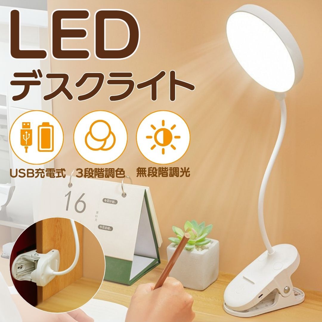 - デスク ライト led 充電式 コードレス クリップ ライト 調光 調色 電気スタンド 卓上ライト ledライト 授乳 明るい 勉強 子供 読書