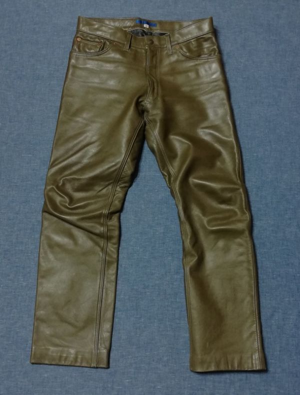 - GOWEST 5ポケット 牛革 レザーパンツ カーキ 表32