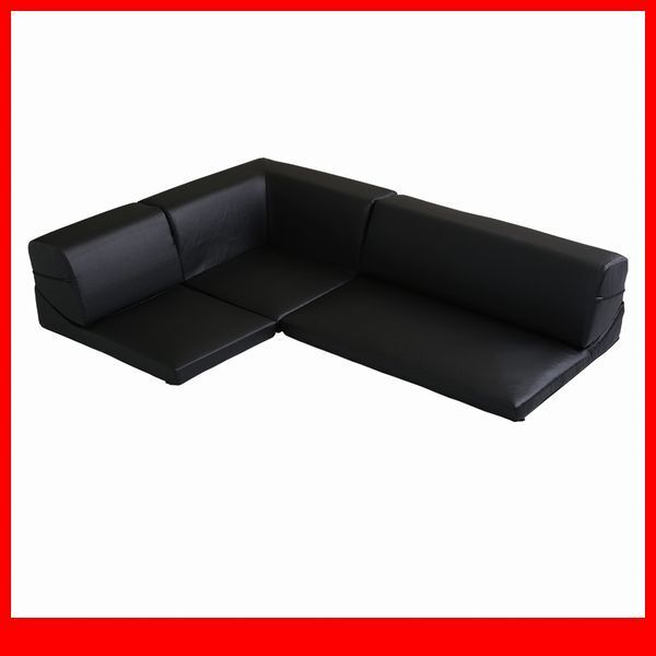 - ソファ★組み替え自由なフロアソファ 3人掛け ロータイプ/リクライニング ローテーブル こたつで/日本製 合皮 PVC/ブラック/新品 特価/a1