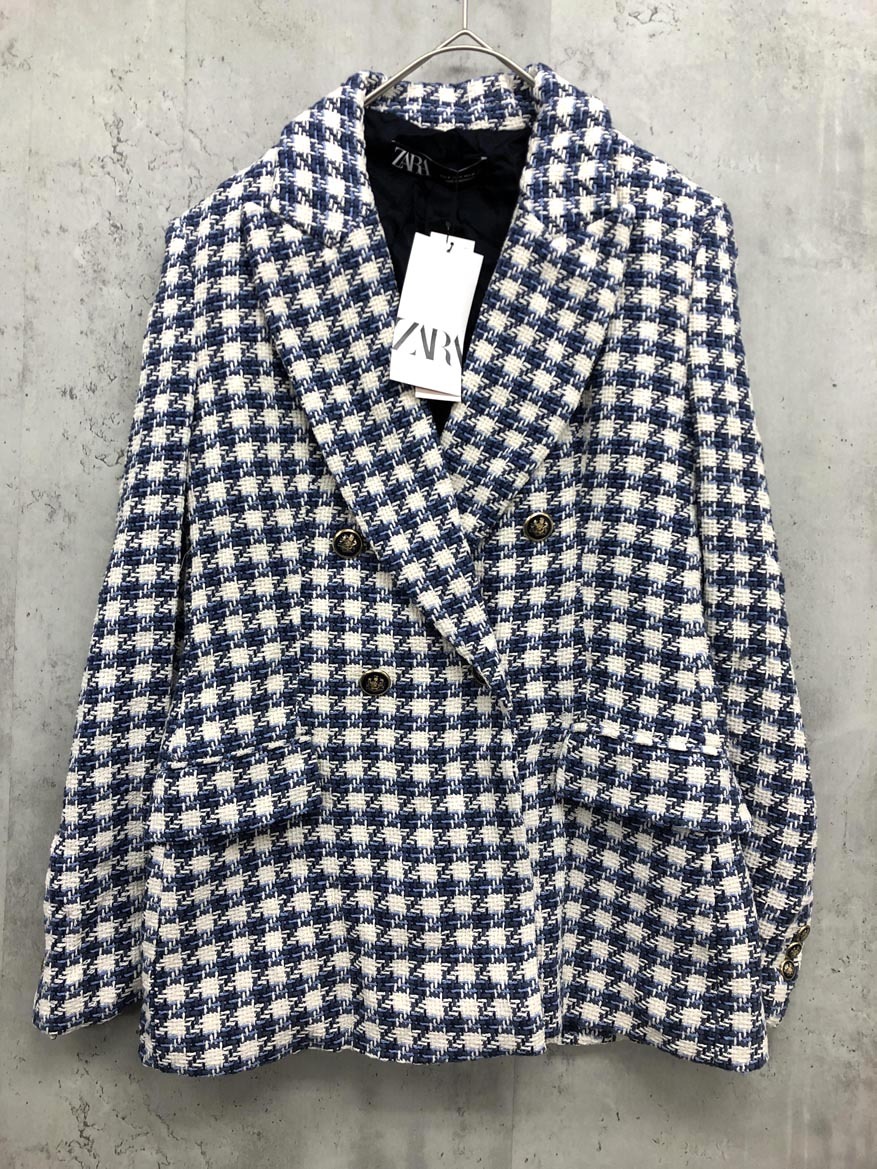 - 新品 ZARA ザラ チェック テーラード ツイード ジャケット sizeM/ホワイト/ブルー ■■ ☆ fkc1 レディース