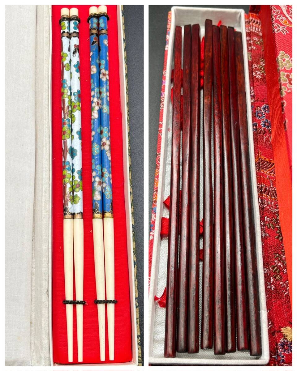 - 中国美術 七宝装飾 骨製 箸 2客 木製 漆塗箸 4客 計6客 七宝 漆塗 美術 芸術 骨董品 古玩 七宝装飾箸 (20345)