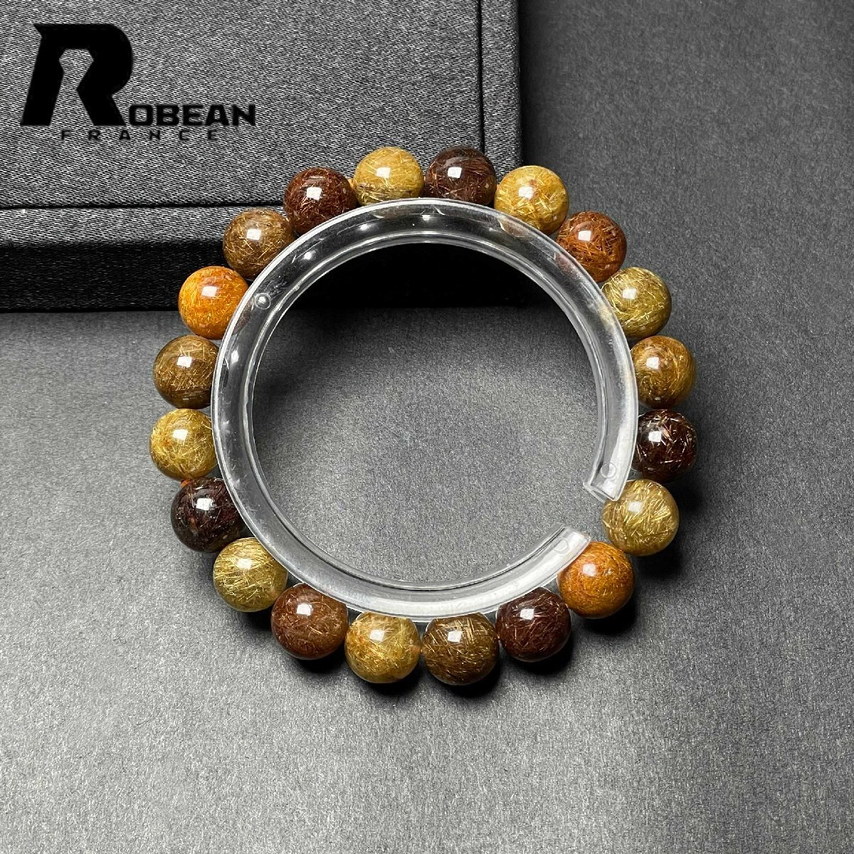 > 高級 EU製 定価10万円★ROBEAN・カラフルブラウンルチルクォーツ★ブレスレット パワーストーン 天然石 綺麗 金運 9.4-10.3mm M1107971