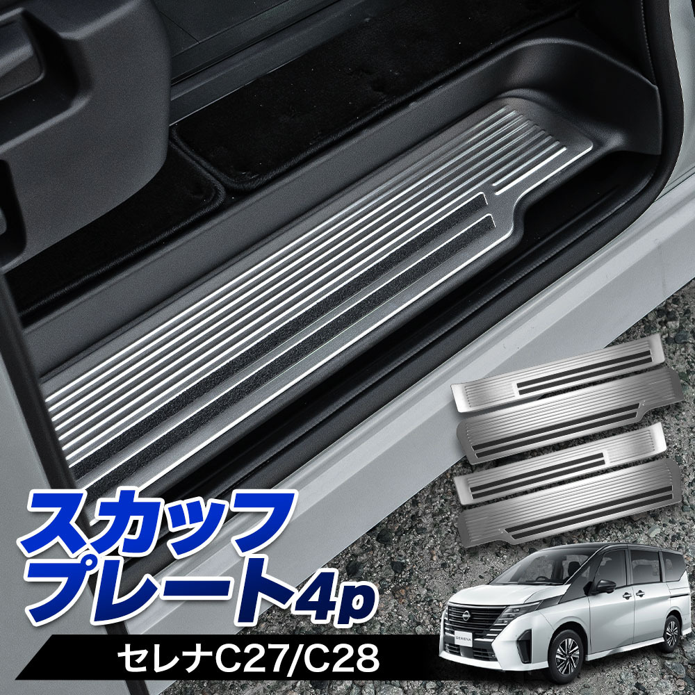 - 【 アウトレット 】 新型 セレナ C27 C28 スカッフプレート シルバー 4p ステンレス