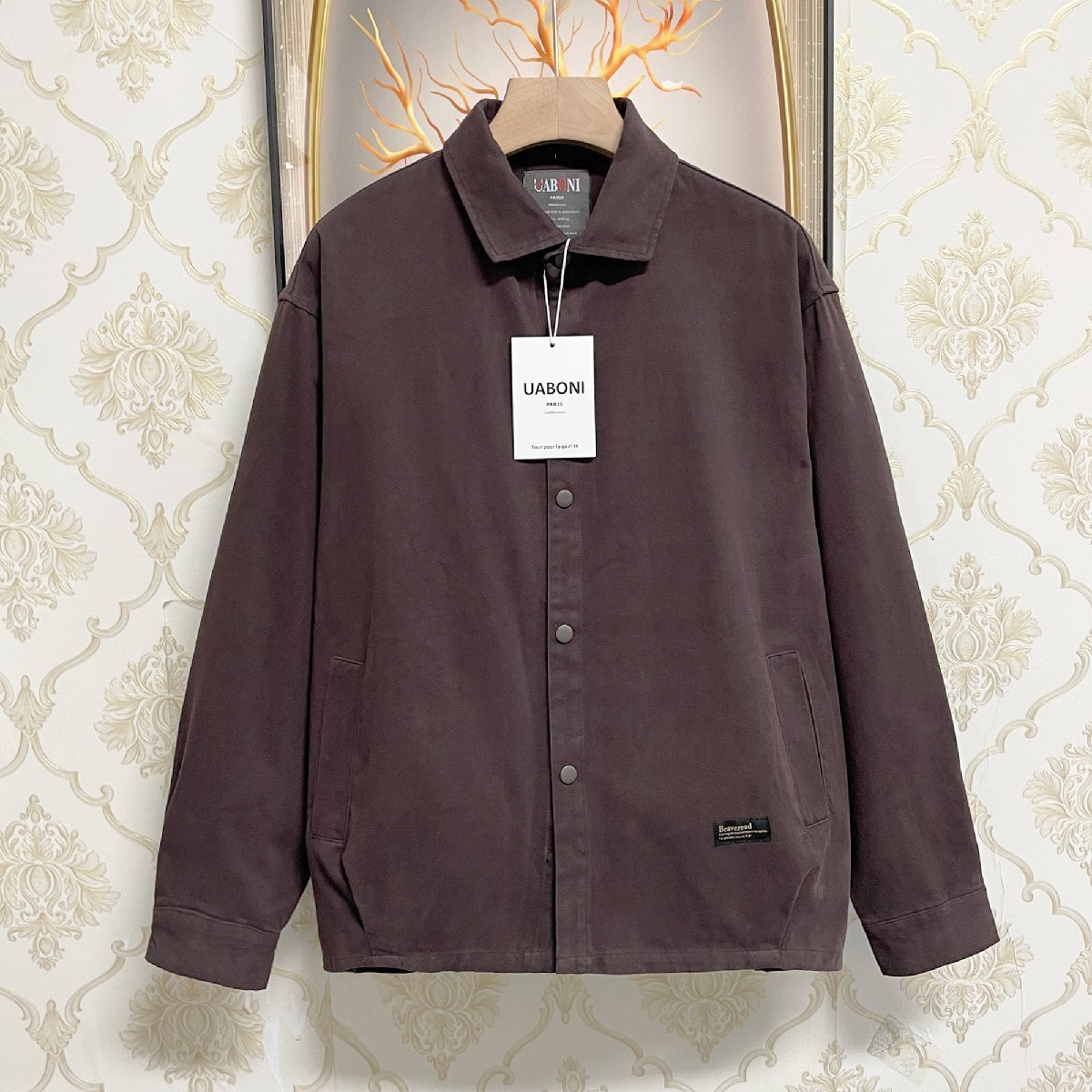 - 高級EU製&定価4万◆UABONI*Paris*長袖シャツ*ユアボニ*パリ発◆綿100% 快適 耐久 無地 折り襟 カジュアル ジャケット 春 2XL/52