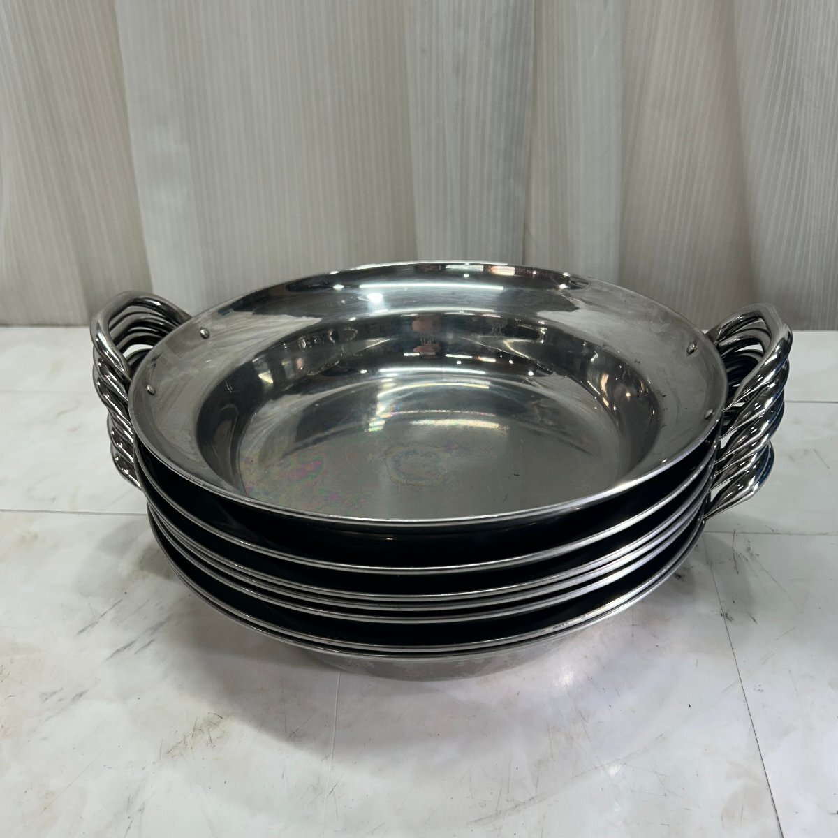 - &OG& ステンレス 寄せ鍋 直径 30.5cm 7枚セット 両手鍋 卓上 もつ鍋 業務用 飲食店 厨房用品 調理器具 中古品 &H-251185