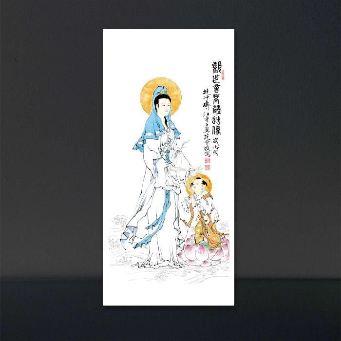 - 水墨画 観世音菩薩 仏教美術 仏画像鑑賞 人物画 学習 見本 練習用 表装なし 画仙紙 画芯 鑑賞 装飾 印刷 zh929