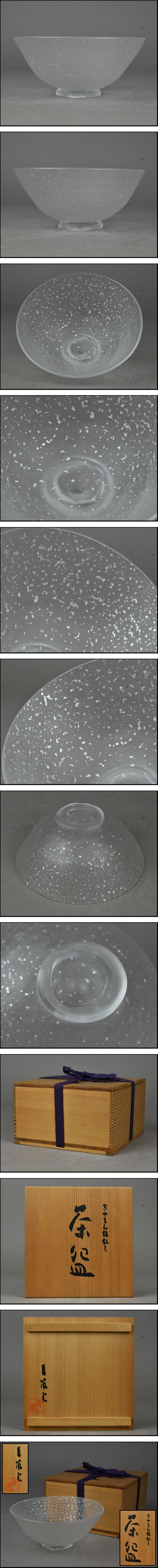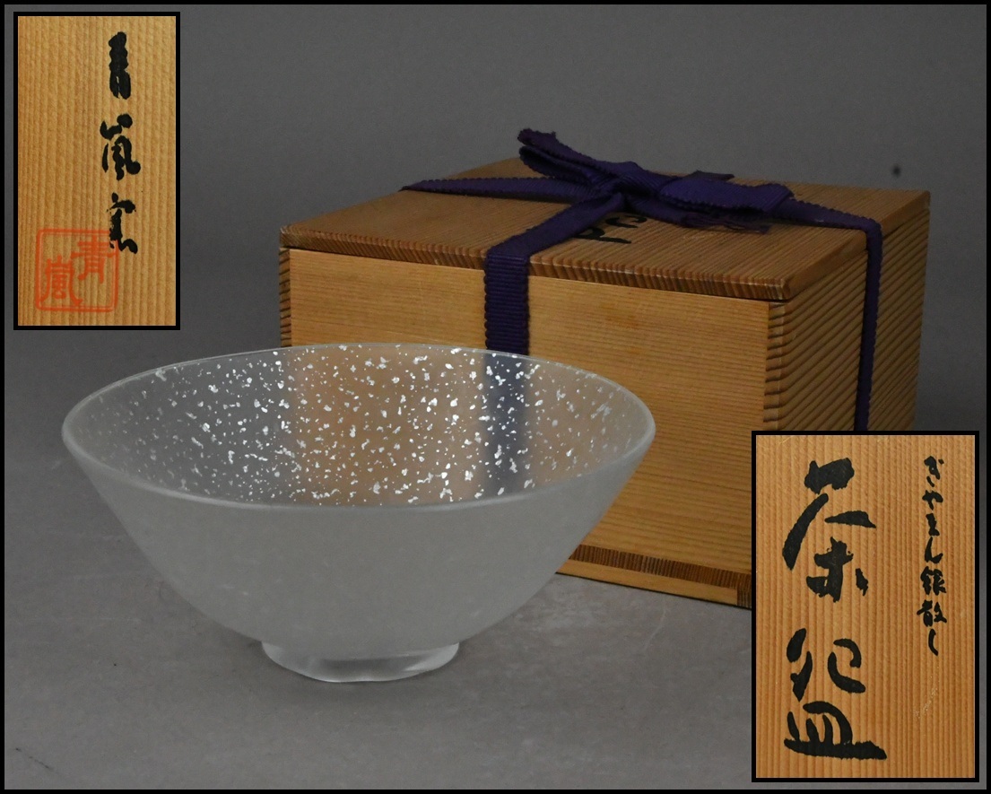- 【NNK】硝子製【青嵐窯】義山 ギヤマン ぎやまん銀散し 茶碗 共箱 茶道具 D7-1118-3