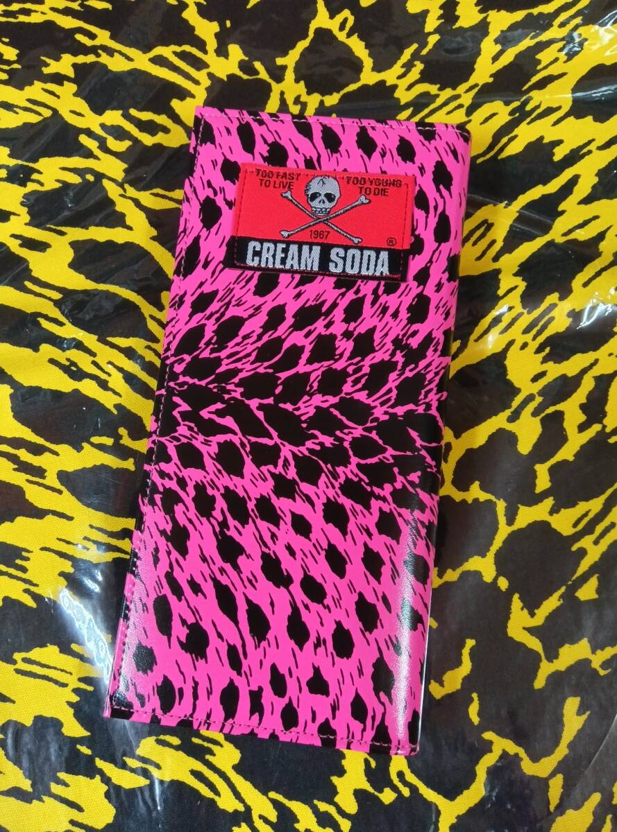 - クリームソーダヒョウ柄サイフNEON PINK色!新品長財布CREAMSODAブラックキャッツピンクドラゴンブルーエンジェル昭和レトロガイコツ髑髏
