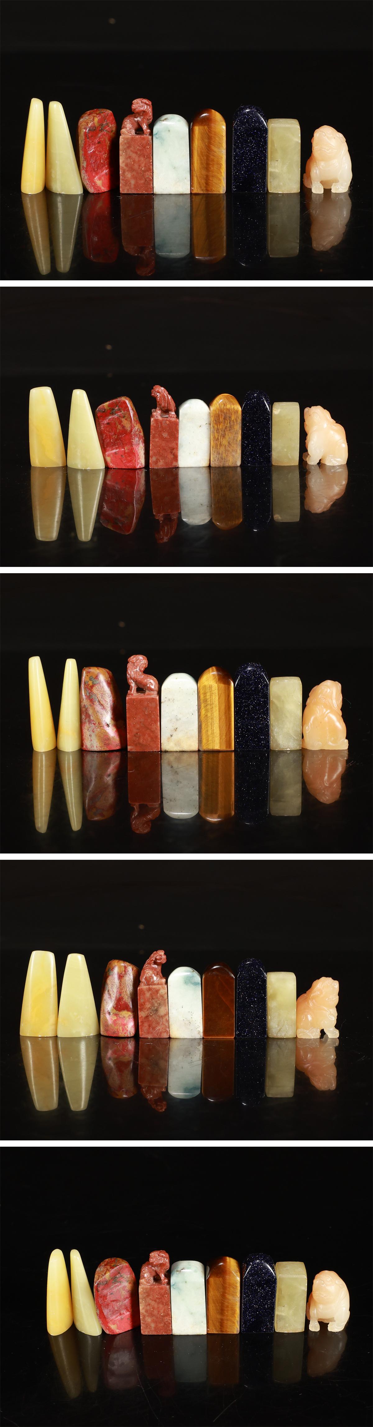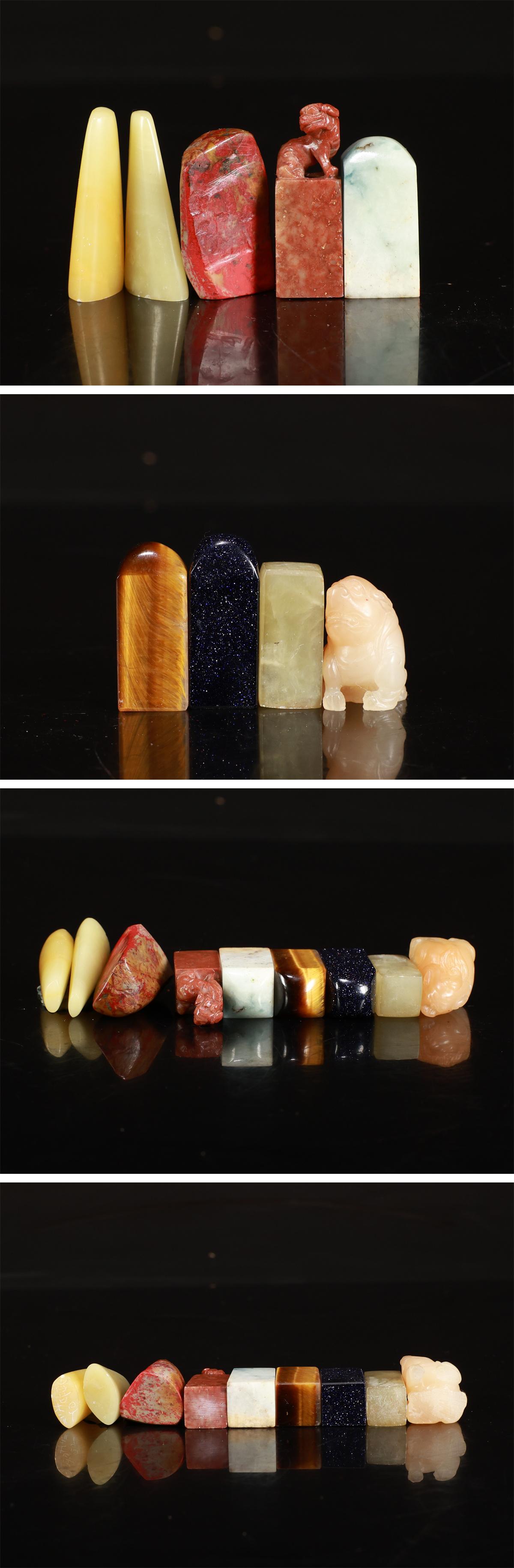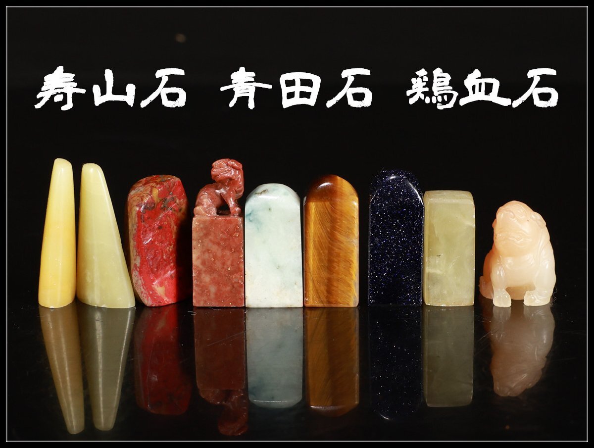 【吉】IB345 唐物 【寿山石 青田石 鶏血石】 黒金石 虎目石 印材 印章 9点 一括出品拍卖