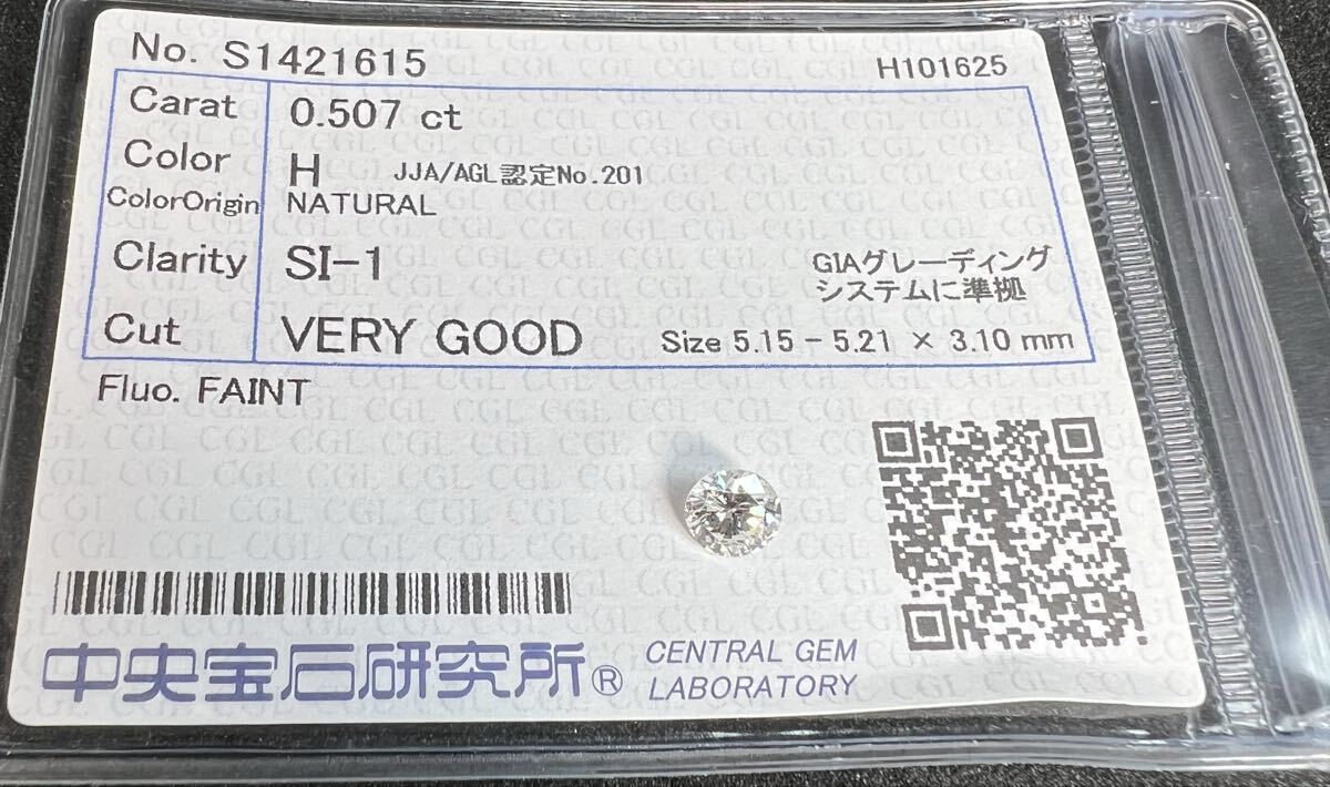 - 1円 ダイヤモンド ルース 0.507ct H SI-1 Verygood EG2481