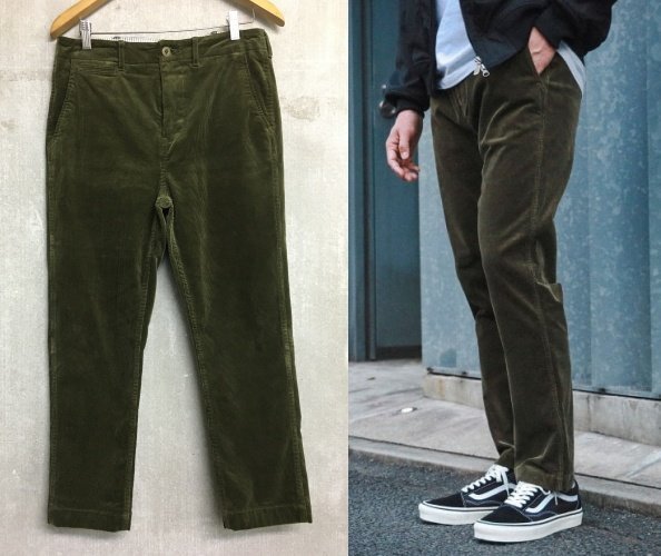 - ◆BEAMS ビームス 美品ストレッチ テーパード コーデュロイ パンツ 11-23-0370-791 サイズM 美品 オリーブ カーキ系 秋冬春