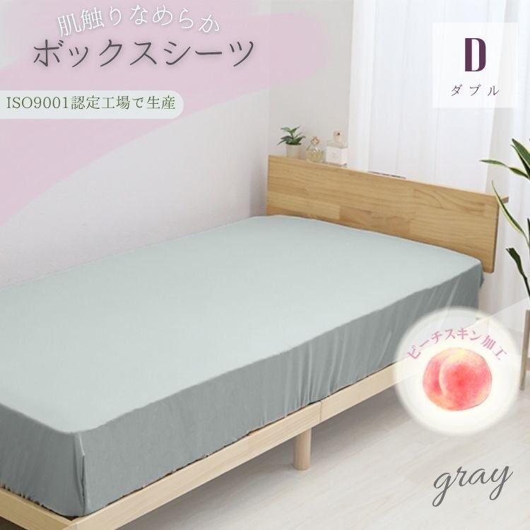 - ボックスシーツ マットレスカバー ベッドシーツ ダブル グレー 通気性 速乾 無地 抗菌 防臭 防ダニ ピーチスキン 丸洗いOK 新品 未使用