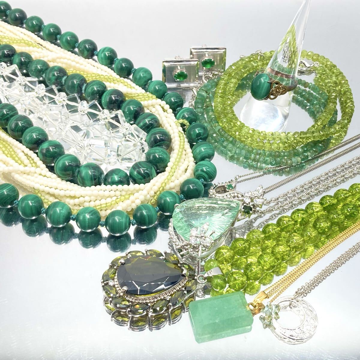 > K14/エメラルド入り!!■アクセサリーおまとめ■ d 約478.9g ネックレス リング カフス ペリドット パライバ マラカイト 585 silver C179
