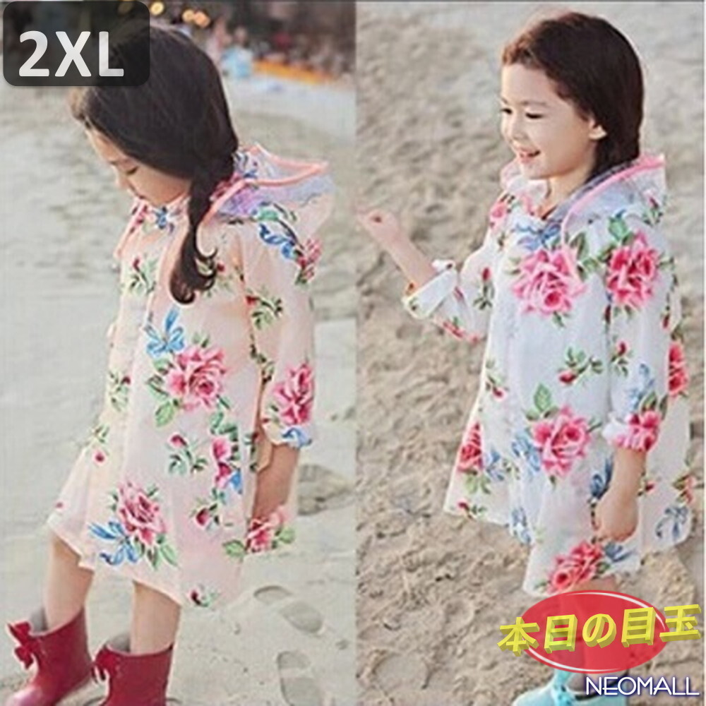 - 1円~☆【642】子供用 可愛い レインコート 花柄 2XLサイズ 身長 115cm - 130cm 防水 撥水 雨具 雨 雪 ゲリラ豪雨 通園 通学 お出かけ