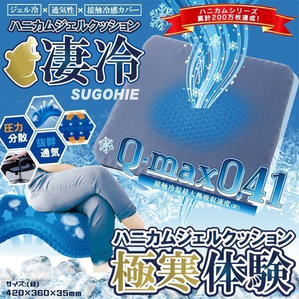 - 冷感 ハニカムゲルクッション Q-max 座っても生タマゴが割れない 接触冷感カバー 驚衝撃吸収 冷ジェル 高弾性ゲル 送料無料- 100S◇ 凄冷