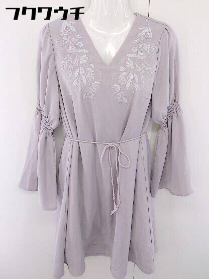 - ◇ ◎ PAGEBOY ページボーイ ALICIA 刺繍 長袖 膝丈 ワンピース サイズF パープル レディース