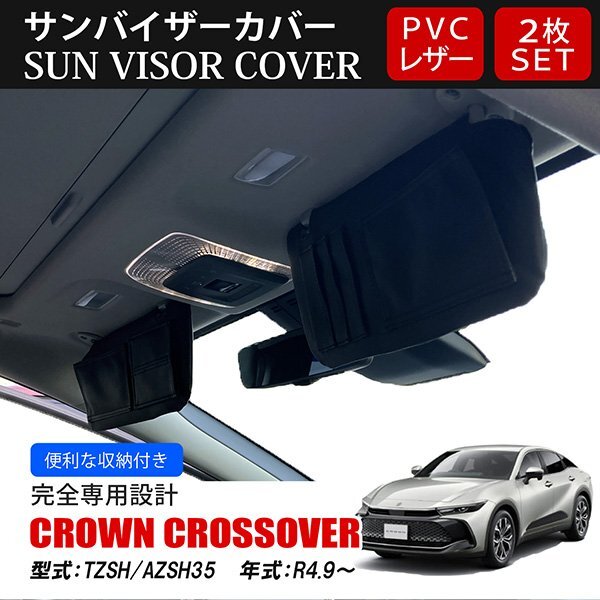 > クラウンクロスオーバー 35系 サンバイザーカバー 収納ポケット付き 日よけ 紫外線防止 PVCレザー ブラック 左右セット