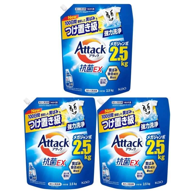 - アタック抗菌EX 洗濯洗剤 詰め替え 2500g つめかえ用 大容量 3個セット 青