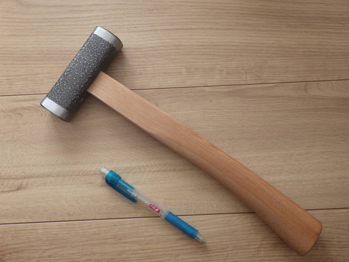 > 未使用長期保管品 槌目仕上げ四角玄能 銘「丸増」頭部重量200匁(750g)猪の牙で磨いた梓柄付き 検玄翁鑿のみ鉋かんな鋸大工道具