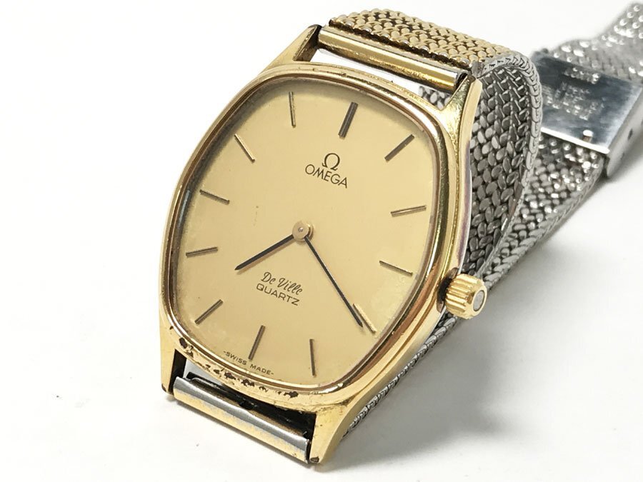 - ◆ジャンク品 OMEGA オメガ DeVille デビル クォーツ 1330 腕時計 ゴールドカラー リューズ外れ不動 ベルトmaruman メンズ