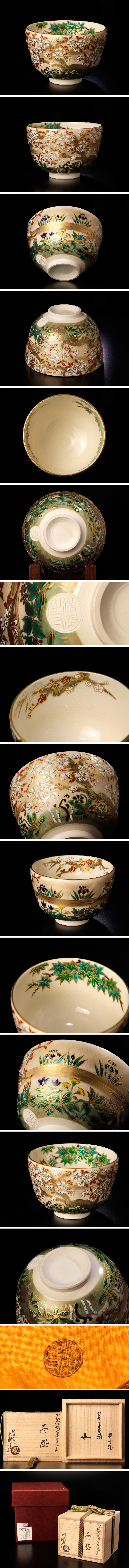 > 【古美味】清閑寺窯 四代杉田祥平造『鵬雲斎書付』色絵 雲錦四季草花ノ画 茶碗 本人作品!茶道具 保証品 W9lK