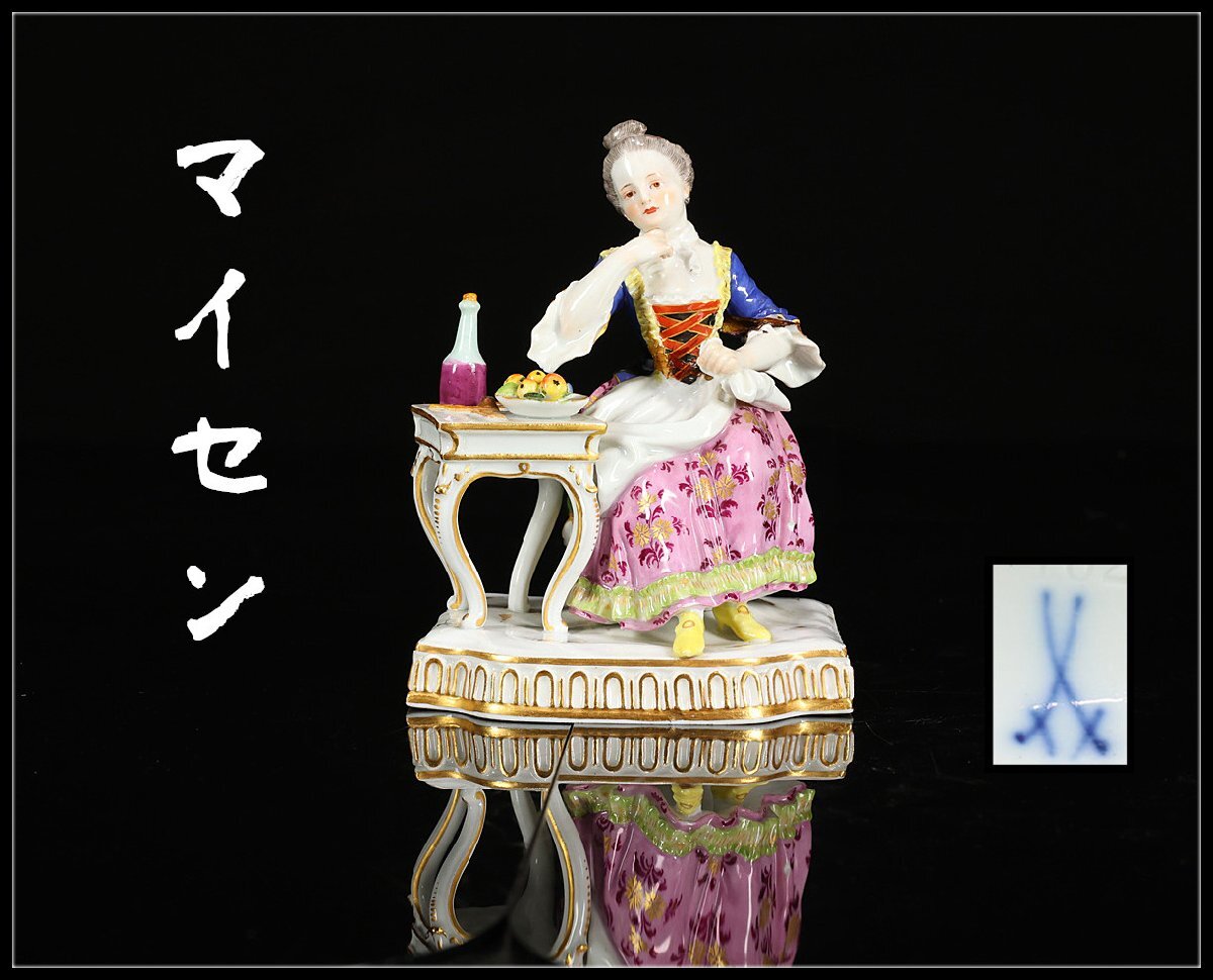 - 【吉】CL944 十八世紀 ドイツ王室窯 MEISSEN 【マイセン】 フィギュリン 磁器人形 貴婦人 置物/美品G!