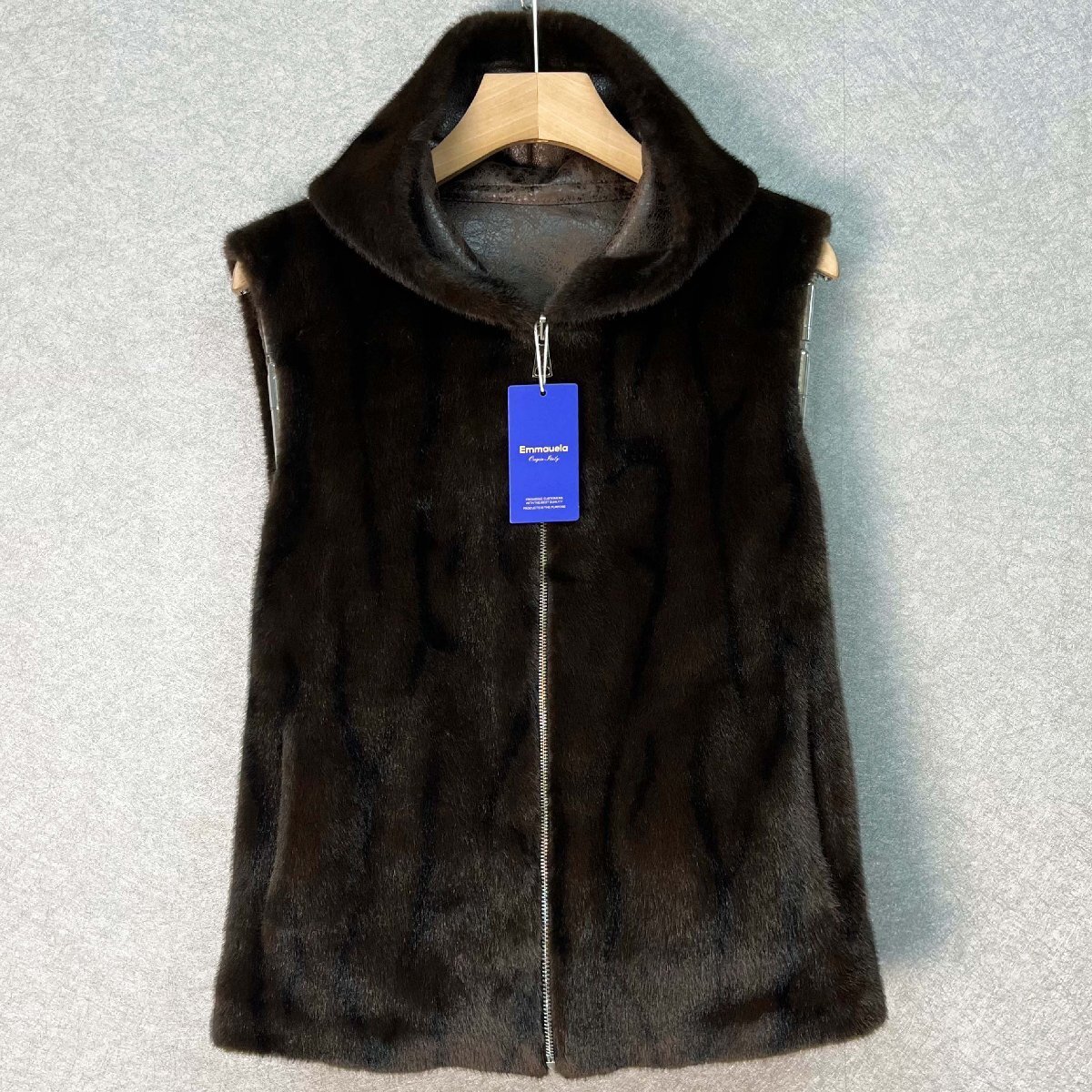 > 絶賛・毛皮ファーベスト 定価8万◆Emmauela・イタリア・ミラノ発◆ミンク/カシミヤ混 モコモコ リバーシブル フード付 カジュアル M/46