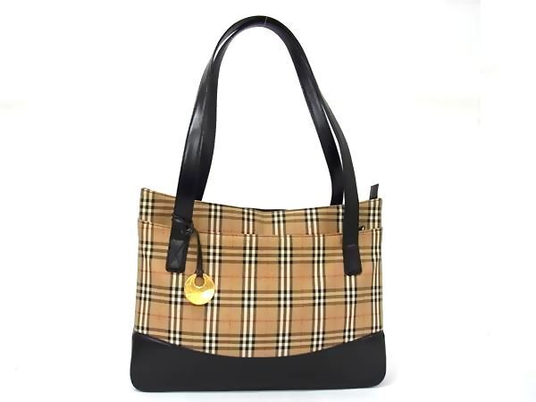 > 1円 BURBERRY バーバリー ノバチェック キャンバス×レザー ハンドバッグ トート ショルダー 肩掛け メンズ ブラウン系 FN8961
