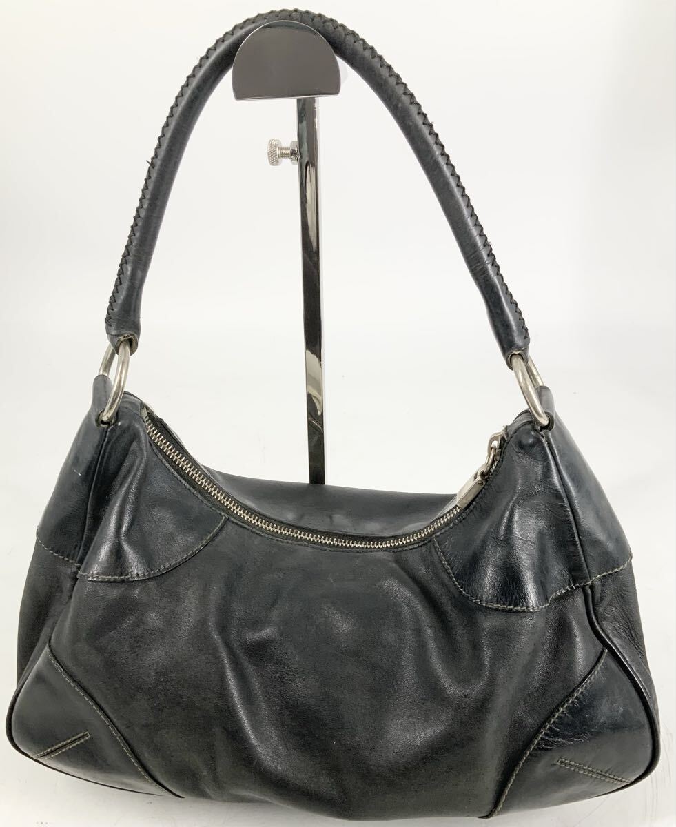 - 【12】ハンドバッグ ワンショルダーバッグ プラダ PRADA ブラック レディース ハーフムーン トライアングルロゴプレート レザー 中古