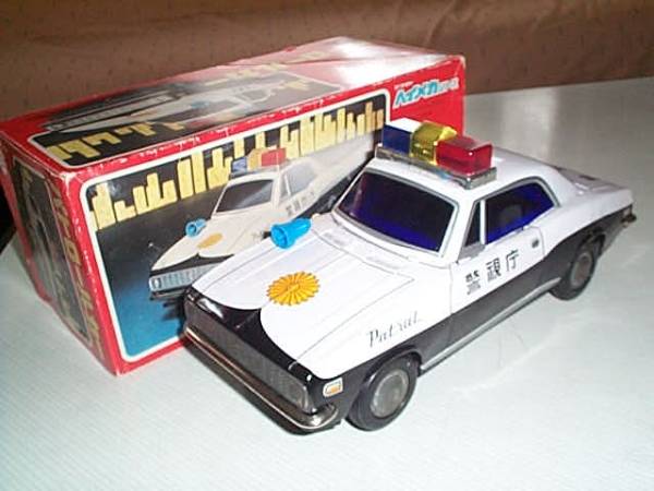 本体に汚れ、傷、錆 があります。単一乾電池2本使用です。電池ボックスの金具の部分が違う物が付いています。金具部分が腐食して修理した物だと思われます。ミステリーアクションです。電池を入れて可動チェックしました。走行時 車の屋根のパトライト中の電球が点灯して中の電球の部分が左右に動きます。同時にサイレンを鳴らして走行しました。可動品です。サイズは(全長)27㎝位です。他に本体に破損、欠品はありません。車のボディーの底の部分はプラ製です。本体のトランクにマスダヤのマーク、MADE IN JAPAN に印字があり底面にはマスダヤマーク、 MADE IN JAPAN の刻印があります。日本製です。箱の状態は汚れ、ツブレ、スレ、ハゲ、キズ、折れ、シワ、サケがあります。サケは箱のフタの左下の角の部分にサケがあります。 以上判るだけ書きましたが写真、質問等で判断お願い致します。落札後はノークレーム、ノーリターンでお願い致します。発送は ゆうパックの(元払いと着払い)のみです。ゆうパック〔送料〕元払い(先払い)、着払いのいずれか選べます。配達日、時間の指定ができます。午前中/午後(1):12~14時頃(2):14時~16時頃(3):16時~18時頃(4):18時~20時頃(5):19時~21時頃 *荷物を郵便局に直接持ち込みますので持込割引(¥120)の送料料金です。 発送方法は以上の方法でしか対応できませんのでご理解の上 入札お願い致します。送料は元払い(先払い)希望の場合 落札後 品物の梱包が完了致しましたら連絡致します。