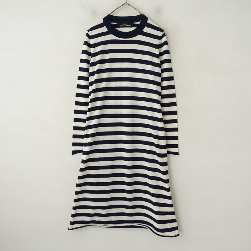 - トリココムデギャルソン tricot COMME des GARCONS *クルーネックボーダーウールニットワンピース*薄手長袖(2-2601-509)【41B62】