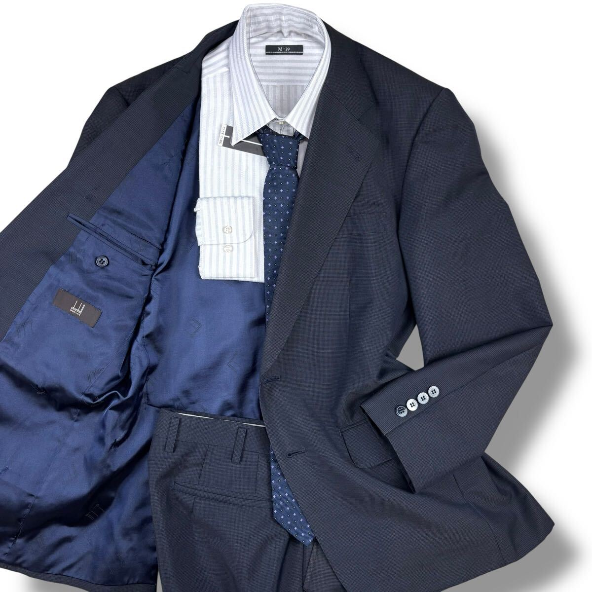 - 1円 美品 M~L ダンヒル dunhill オーダーメイド スーツ セットアップ 2B マイクロチェック キッドモヘア super120s' 日本製メンズネイビー
