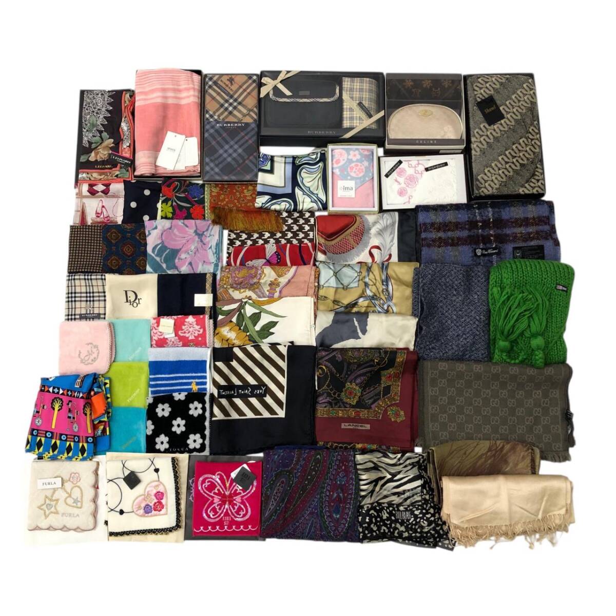 > ☆1円グッチ ディオール サンローラン セリーヌ バーバリー ヴェルサーチ アルマーニなど スカーフ ハンカチ マフラー おまとめ セット