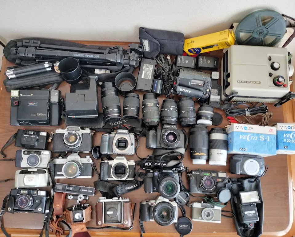 > 【AO-23】カメラ レンズ などまとめ SONY PENTAX KONICA MINOLTA OLYMPUS Polaroid 他 フィルムカメラ デジカメ 一眼 8㎜映写機