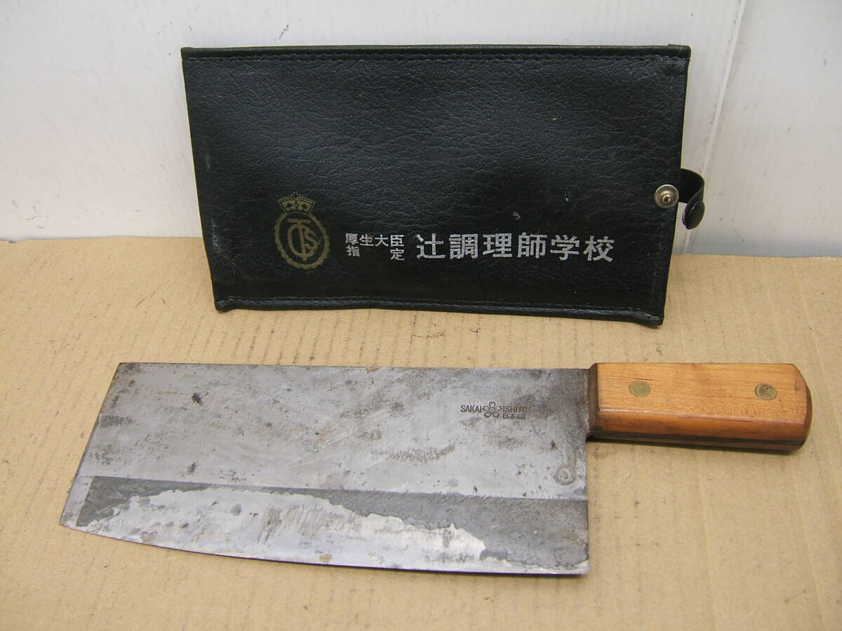 > 中古 SAKAI ISHITO 日本鋼 料理学校 刃長約215mm 中華包丁 万能包丁 調理器具 刃物 002