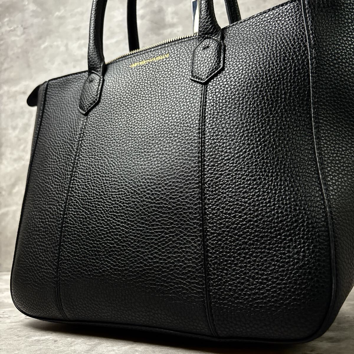 - 現行近《未使用級/大容量》 EMPORIO ARMANI エンポリオアルマーニ メンズ トートバッグ A4 紳士 ビジネス 肩掛け ロゴ レザー ブラック