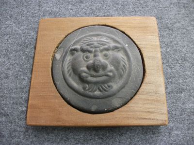 - 断捨離中 北魏時代 書鎮 古代鬼面瓦当 台付 文鎮 1500年前