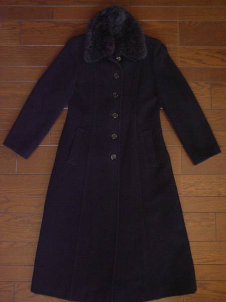 - アンゴラ 黒ロングコート 取り外しファー付き スリット入り ~送料無料