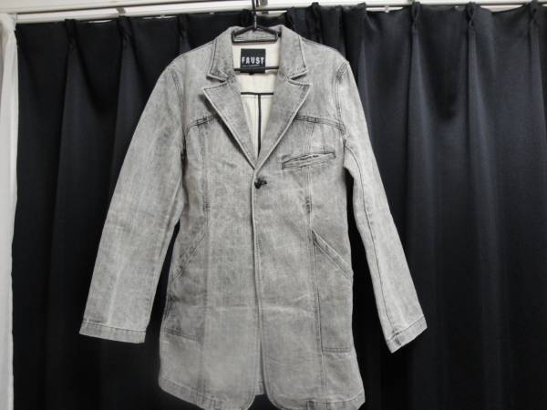 - FAUSTファウスト★ブリーチブラックデニムロングコートジャケットJK★シングルチェスター