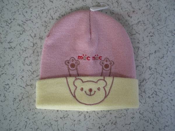 - 女児ニット帽子 (フリー・ピンクX黄・クマ)