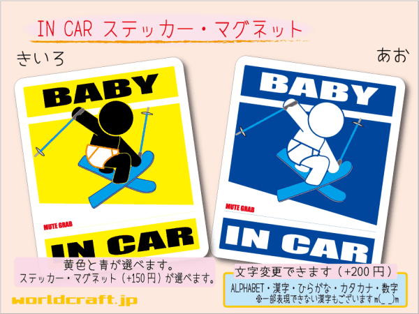 - ■BABY IN CARステッカースキーB!かわいいシール☆ 車に乗ってます ステッカー/マグネット選択可能☆