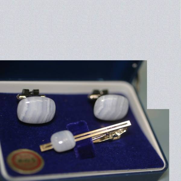 - 薄い青色横楕円ボリュームのあるカフスネクタイピンセット綺麗 ○D8-84-4