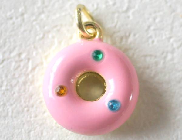 - ■即決■ラインストーン付きピンクのドーナツ・チャーム