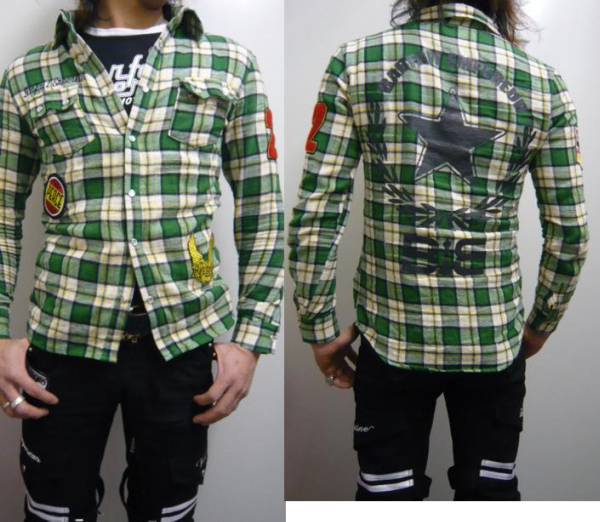 - 匿名配送 送料無料 新品 バルフェ 緑 チェック柄 アメカジ系 ネルシャツ ワッペン ウエスタン メンズ M アメリカン サーフカジュアル