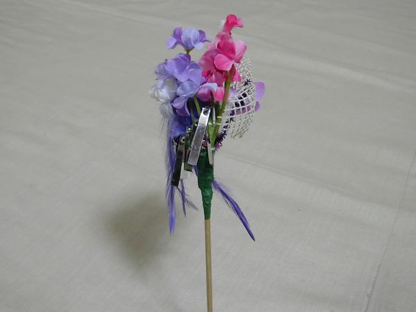 - ■美品:和装髪飾り 子供用七五三などに 三色の花と青い羽 Dn768
