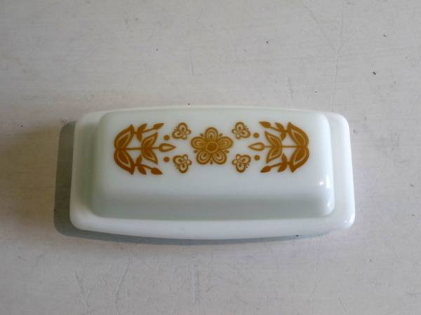 - オールドパイレックス バターディッシュ バタフライゴールド/PYREX 耐熱ガラス ミルクガラス ヴィンテージ