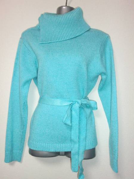 - ★セール値下げ★海外コレクションモデル★鮮やかスカイブルー肉厚斜めタートル調整可能ニットセーターM~L★結ぶベルト付★切手★