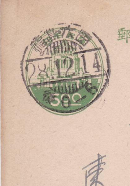 - t1911★櫛型印/福島・広田28.12.14//葉書