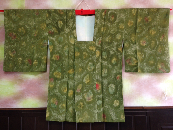 - 【道行】正絹袷 コート丈76cm 松葉色 美品 050104