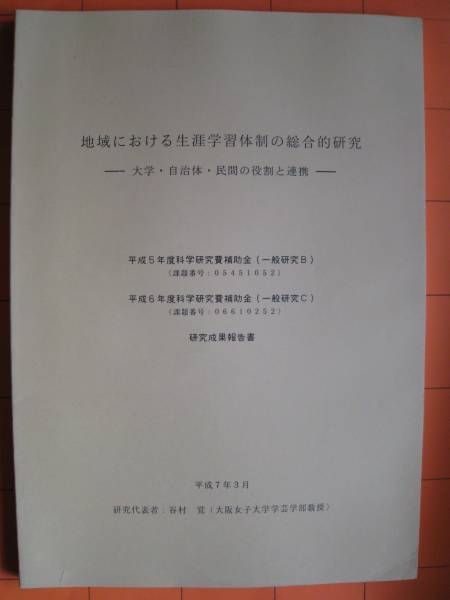 - 『地域における生涯学習体制の総合的研究―大学・自治体・民間の役割と連携―』★